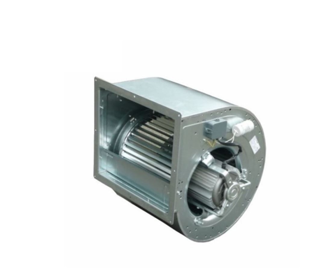 Moteurs (Moto-ventilateur) double ouïe à action en acier galvanisé. Boitier de raccordement électrique plexo fixée sur la volute.